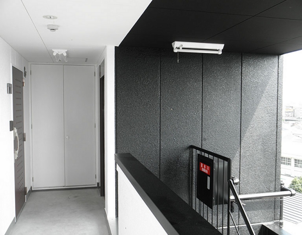 黒のワンルームマンション 玉出駅近くのワンルームです。事業主様のご希望で出来る限り真っ黒で行こうとの事でした。意外と黒でも眼につくものです。 遠目にも良く視認出来る銘板です。 鉄骨造8階建てです。 1階は事務所もあります。 ワンルームアプローチ ワンルーム共用廊下 ページトップへ HOME Works 1 Works 2 Service About Contact