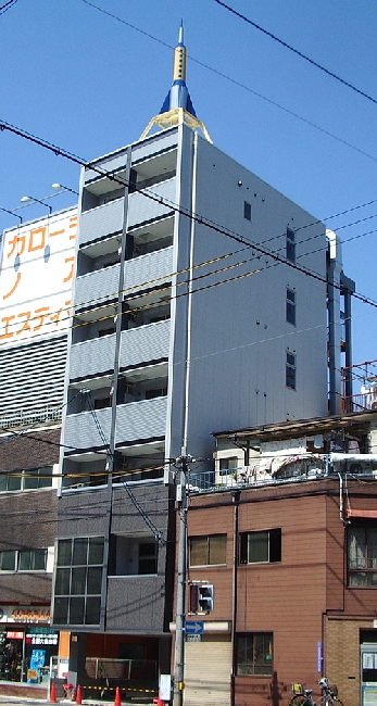 屋上にロケットのあるワンルームマンション 別に実際発射出来る訳ではないのですが、ロケットは予定外でした。 事業主様が遊戯具製作会社でシンボル的に設置してます。 大阪市福島区に位置し、住宅スケール(約30坪)の土地にワンルームマンションを建築しました。 屋上のロケットは避雷針を包んでます 鉄骨造7階建てです エントランス ページトップへ HOME Works 1 Works 2 Service About Contact