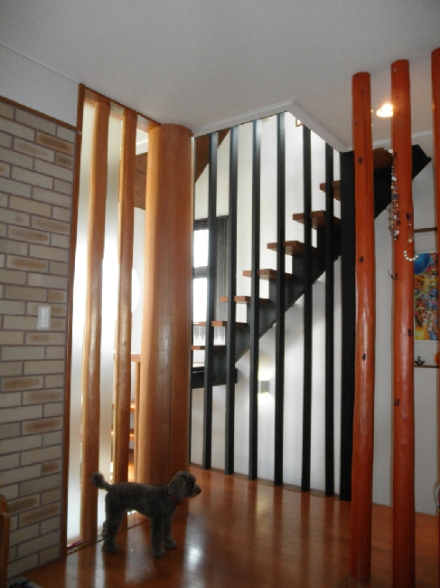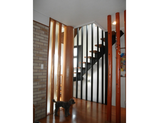 浜寺公園町の家 いわゆる自邸です。 色々なタイミングが重なり、土地取得から建物竣工までを約6ヶ月間で突っ走りましたので、少々手荒な所もあります。 極太の大黒柱にこだわりました。大黒柱と言っても構造的に全てを支えている訳ではないので、子供の成長記録の目盛を書く事が役割の様なものになりました。 道路側壁面緑化をしています ポスト柱は古材リサイクルのオリジナルです。 ストリップ階段 極太大黒柱と犬のクッキーくんです。 ページトップへ HOME Works 1 Works 2 Service About Contact